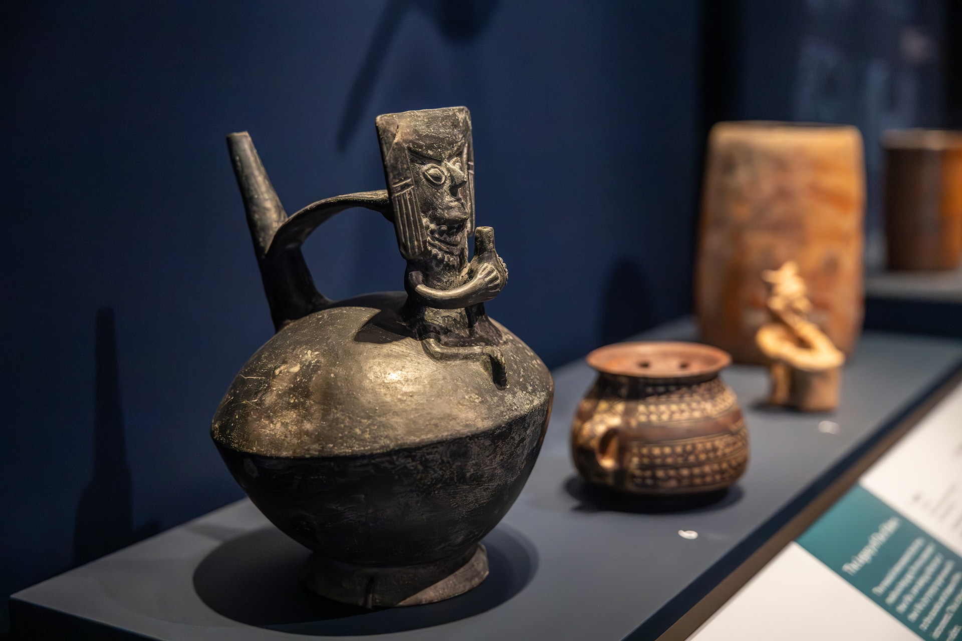 Pottery, textiles, sculptures, instruments, and other materials on view span 3,000 years of history. They illustrate a range of complex stories, including writing, music, animal husbandry, architecture, religion, ritual, and trade.