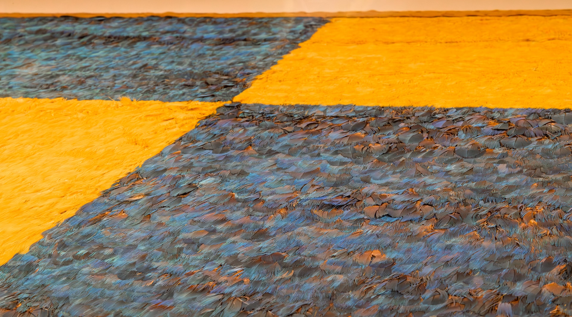 This textile, made of parrot feathers from the Amazon rainforest and cotton from the coast of Peru, shows the range of the Huari empire.