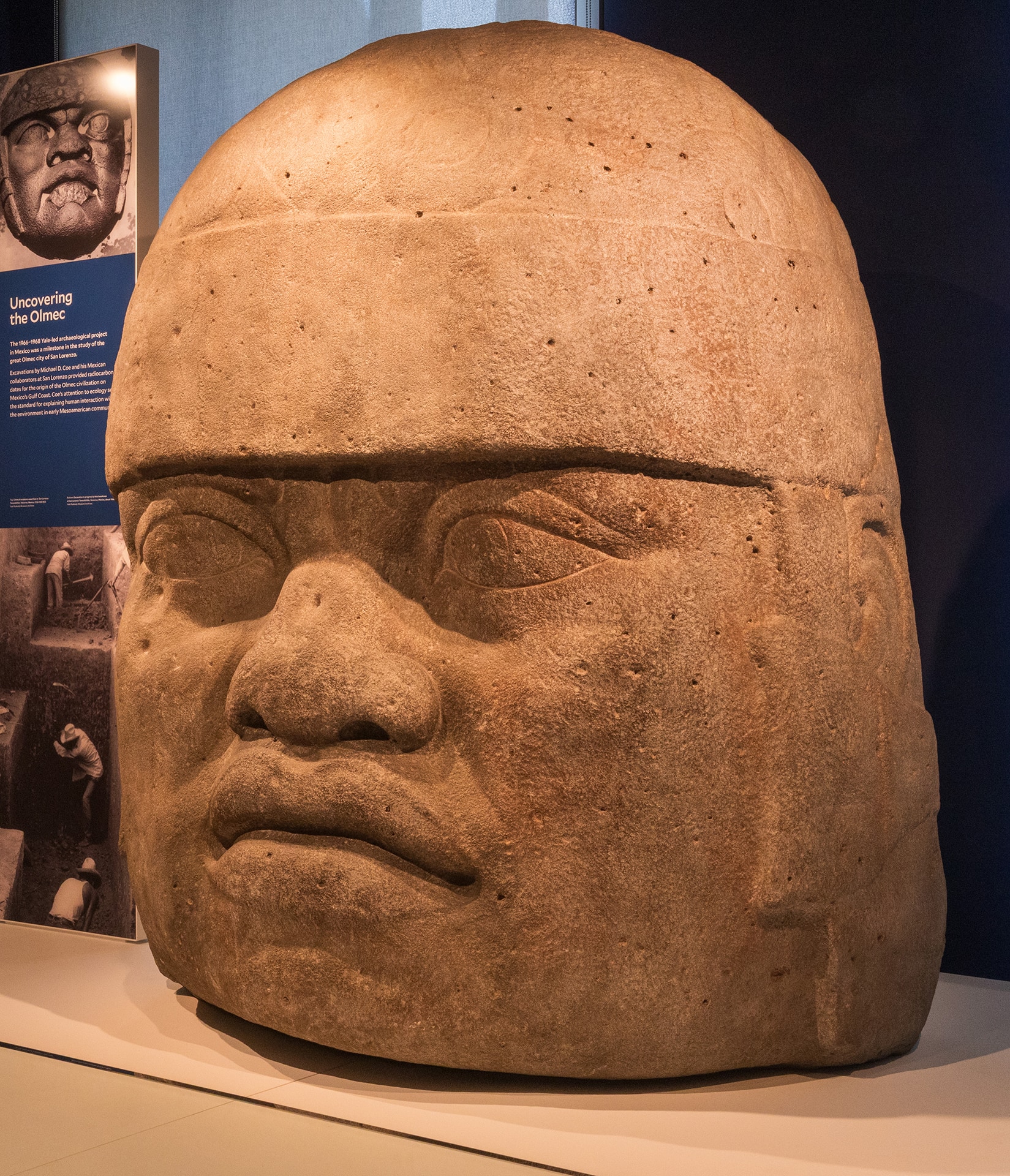 Monumental architecture and sculpture in Mesoamerica began with the Olmec civilization. This is a replica of an enormous sculpture, likely a portrait of a ruler.